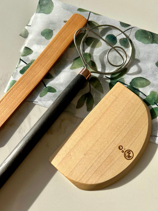 After several failed attempts, I started baking sourdough in 2021 and my starter was so healthy I thought I may as well start selling all of the excess starter I was producing. Then, about a year later, I had the sudden idea to design my own dough whisks, spurtles, and scrapers. I was lucky enough to find my business partner and expert woodcrafter, Zach, right here in Leeds! It all fell into place seamlessly and through selling kitchenware I've made so many baker friends near and far. I've decided to stock some of the amazing kitchenware that I use in my own kitchen. I stock items from small batch ethical makers from the UK and Europe, and I have one lovely business from the states. Each item in my shop is something that I use and adore. I hope you find something here that brings you joy!