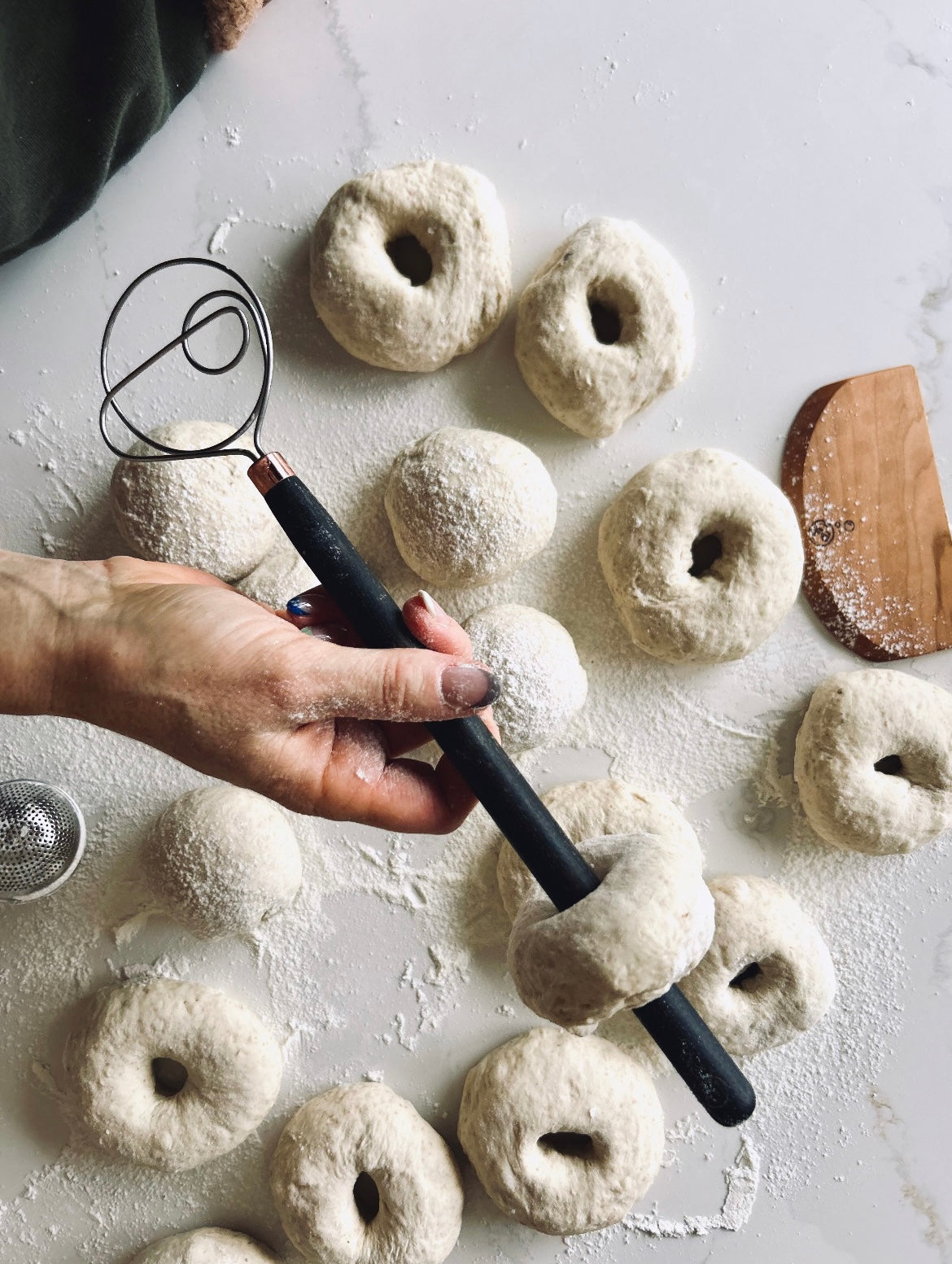 This whisk is designed by me and is inspired by a lovely mid-century whisk I came across when I first began baking with sourdough.